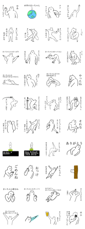 白熊の名前はまいちゃんです。まいちゃんは自分が大好きです。まいちゃんは恵まれた才能の持ち主です。スタンプはすべてのまいちゃんのために作られました。