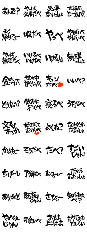 日本中の方言を味わい深い筆文字で書きました!