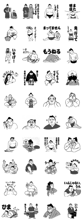 相撲好きによる相撲好きのための相撲人(すまいびと)スタンプ第二弾。本場所開催中でなくても、相撲に興味がなくても使いやすいスタンプになりました…かね?