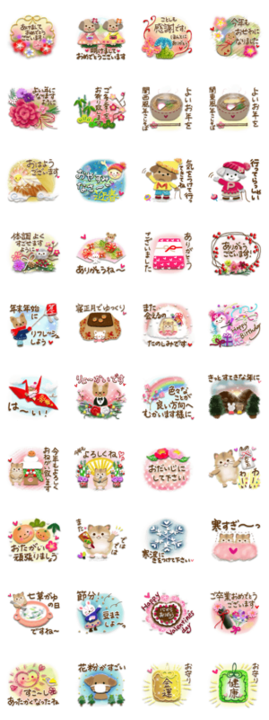 新年を明るく迎えられそうな楽しいスタンプです。可愛らしいですよね。