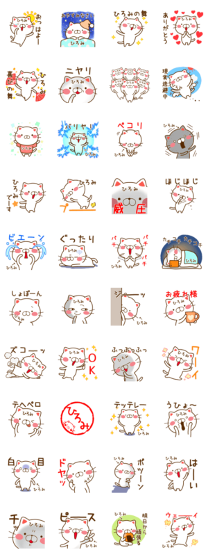 ひろみちゃんが使える名前スタンプです。裕美、博美、弘美、浩美、宏美、広美、洋美、広見、裕実、大海、全国のひろみが付く人専用のスタンプです