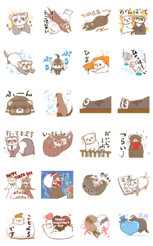 にょろろ~んと可愛いフェレットたちのスタンプ!クリスマス、年末年始、バレンタイン、ホワイトデーにも使えるやや冬編♪