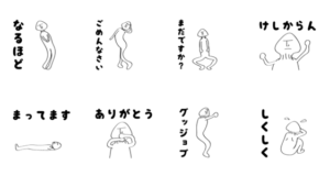 瞬発力が半端ないクネクネ奇妙に動くキノコマンのスタンプ第二弾です。アフロ・モ・愛三 より発売