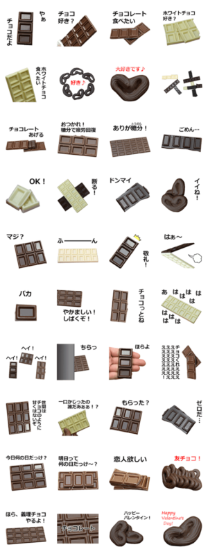 チョコレートの写真で作った実写スタンプです♪一眼レフカメラで撮った超高画質です。スイーツ大好き。40個入り。バレンタインデー、好きな人にも竹野チコ より発売