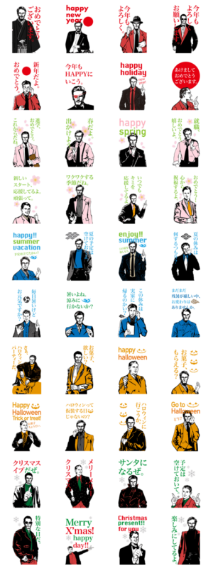 ダンディで欧米的WOW!なキャラなのに、正月〜クリスマスまで日本的な季節ものに使えるスタンプ。大人の雰囲気でスタイリッシュなデザイン、だけど変な雰囲気も楽しめます。 ※このスタンプはトークルームで大きく表示されるBIGスタンプです。ケンヤ・カセ より発売