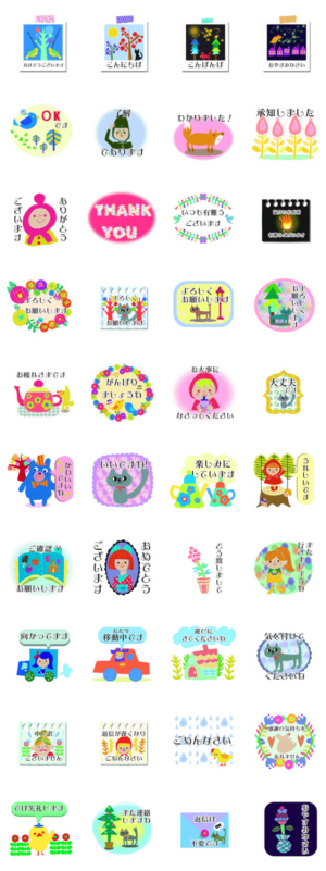 OL、主婦、学生さん、ママさんも毎日使える雑貨風スタンプ。ネコや小鳥、お花などパステルカラー。ママ友さんや先輩、同僚、彼氏にも連絡を♪でか文字なので高齢者にも☆