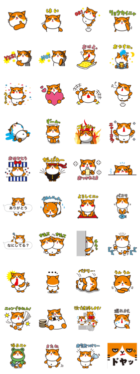 ワイモバイルのCMで大人気のネコ「ふてニャン」のスタンプ第2弾が登場!毎日使えるスタンプが40種!みんなの会話を盛り上げること間違いなしです♪ワイモバイル より発売