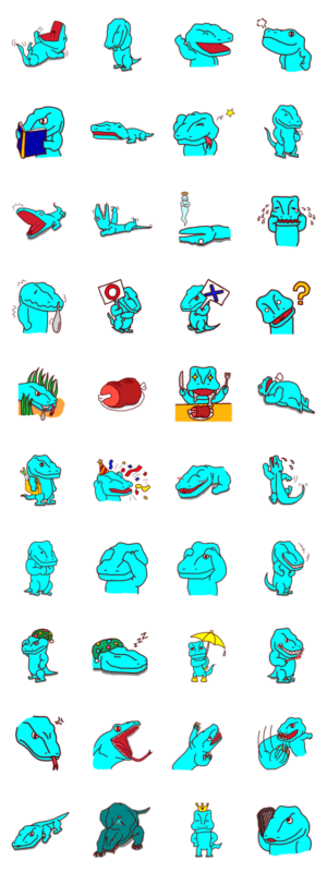 硬いウロコの皮膚、ムキムキの腕、鋭い爪、そして猛毒を持つという個性溢れるトカゲ界の王者のこどものスタンプです。早く一人前になりたいと思っています。馬刺ユッケ より発売