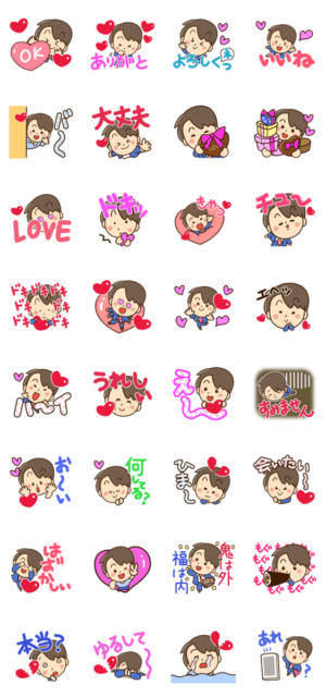『やさしいパパ』スタンプから『ラブラブ編』の登場です。優しい旦那さんや、お父さんにぜひ使っていただきたいスタンプです。バレンタインやホワイトデーにも使えます。かたこ より発売