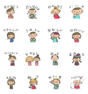 手話の動きでかわいいものをアニメーションスタンプにしてみました。 ぜひお試し下さい。to31 より発売