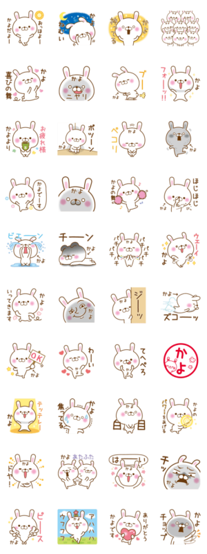 かよちゃんが使える名前スタンプ。かよ、佳代、嘉代、佳世、加代、佳代子、佳世子、加代子、香代子、カヨコなどかよがつく人専用スタンプです