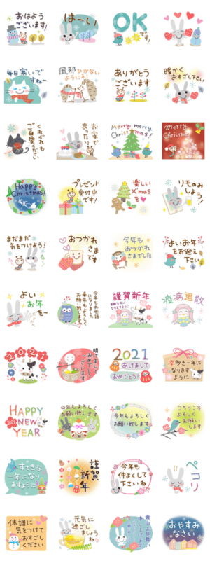 今から毎日使える!ひらりーーの大人カワイイシリーズ24。 うさぎ/年末年始/お正月/お祝い/敬語/クリスマス/虫/鳥/北欧風/ハリネズミ/ふくろうひらりーー より発売