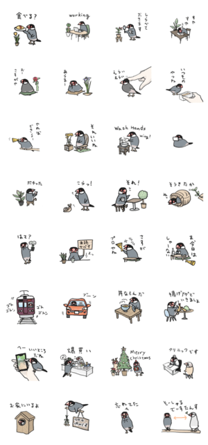 桜文鳥チャッピーのスタンプ第8弾は植物のある暮らしをイメージしました。そしてコロナ禍の収束を願ってチャッピーとともに気をつけていきましょう。