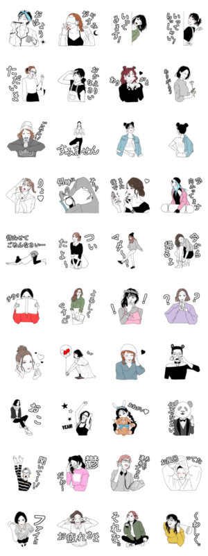 スタンプの一部が背景の色に透ける、友達と差をつけるオシャレな大人スタンプ♡韓国ファッションが好きな女子にも!女友達や彼氏に送ってみてね。日常会話多めです!