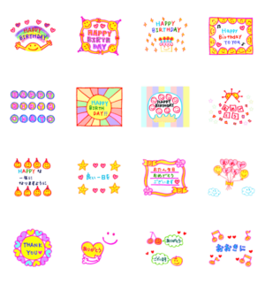 イラストの色合いがカラフルで、見ているだけでハッピーになれるスタンプです。