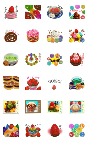 シリーズ第4弾。カラフルなおやつ達が皆様のコミュニケーションをお手伝い。ケーキやホイップクリーム、キャンディ☆見ているだけで癒されるおやつの世界にいらっしゃい。