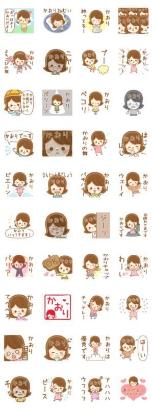 かおりちゃんが使うスタンプです。香織、香里、佳織、圭織、可織、果生莉、佳保里、加織、花織、薫、佳織、圭織など全国のかおり専用のスタンプです