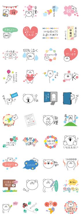 卒業のシーズンですね!小学校、中学校、高校、大学、専門学校、職場...すべての卒業式に使えます。お別れの季節もカワイイスタンプで☆白クマのスタンプです。のんのん より発売