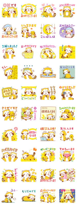 あらいぐまラスカル あいさつスタンプ スタンプに書いてある文字一覧
