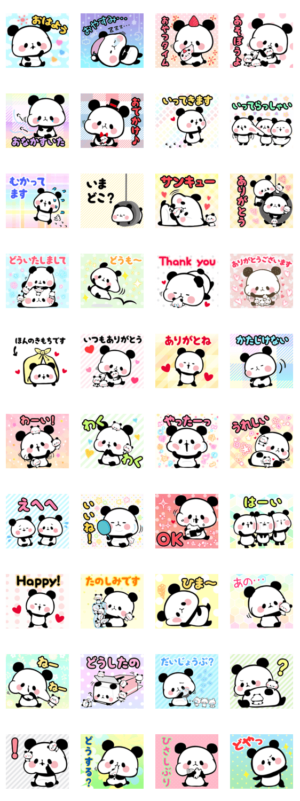 もちもちぱんだ公式「カラフル」スタンプです。「日常・感謝・喜び・話し」がテーマです。アーツプラネット より発売