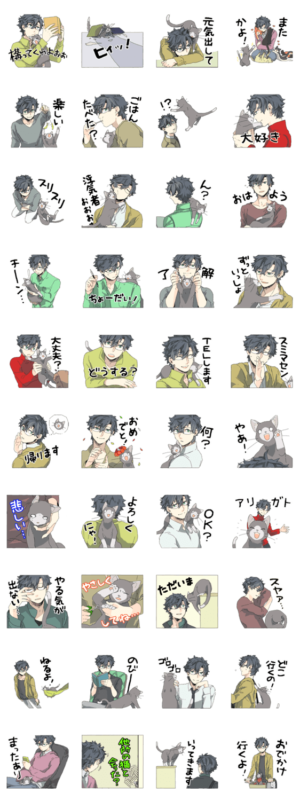 グレー猫&メガネ男子【ねこのきもち】 スタンプ画像一覧