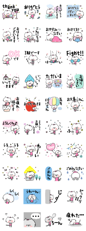 necoの日常スタンプです。よく使う言葉は多めに入っていて、毎日何度でも使えるセットです♪胸キュンカラーで女子力アップ↑kaho より発売