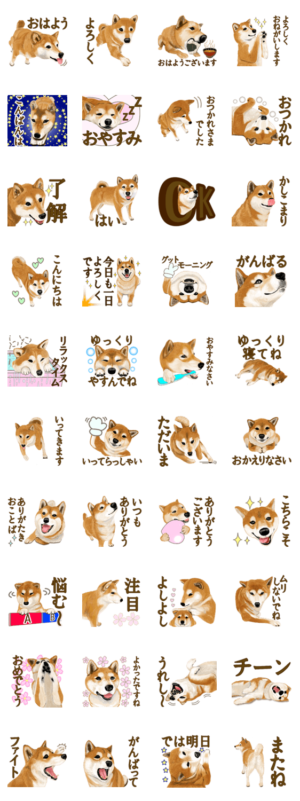 写真ではありません・手描きです。柴犬。日本犬。友達、家族、彼氏彼女との会話に使ってください。ままいぬ より発売