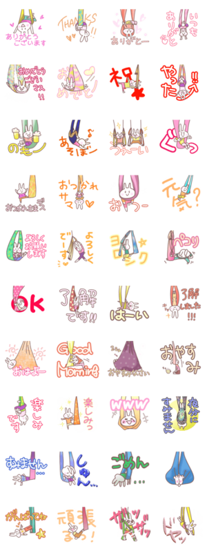 挨拶スタンプシルクサスペンション編♪エアリアルヨガやハンモックヨガ、フローティングヨガ、空中ヨガが好きな方、ピラティス・運動好きな方も日常のやり取りにどうぞ☆