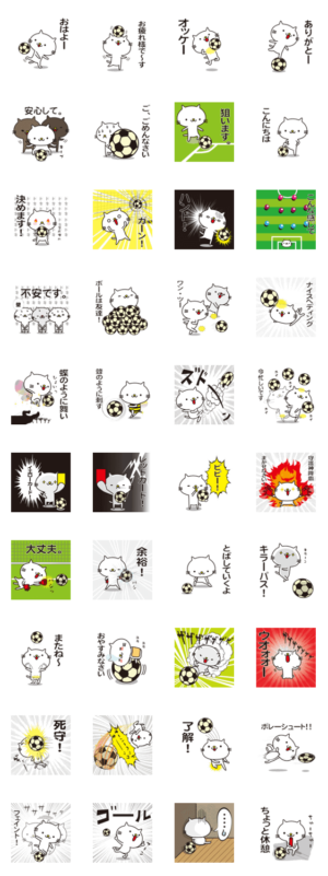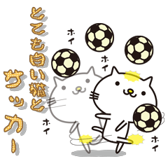 とても白い猫とサッカーです。 サッカーをこの上なく愛する方のためのスタンプです。ボールは友達ですか?おざきょ より発売