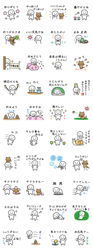 自分にも相手にも、ちょっと甘い所があるスタンプの第9弾です。今回は仲良しのねこと一緒に、ゆるく春を過ごします。