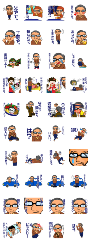 お父さんだって可愛いスタンプ使いたい!ちょっとお茶目なお父さんスタンプ(関西弁ver.)アカギシズカ より発売