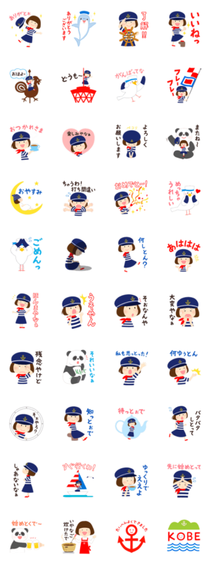 女の子と神戸をモチーフにしたシンプルなスタンプで使いやすい。神戸弁に馴染みがある人もない人も使えるような簡単な言葉で作られているのが良い。