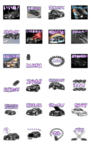 動く!車(VIPカー1)クルマバイクシリーズ スタンプ画像一覧
