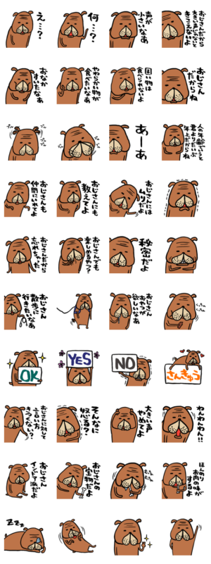 疲れたおじさん感がマシマシの犬スタンプ。おじさんの犬が言いそうだなという、言葉使いがツボにはまりました(笑)