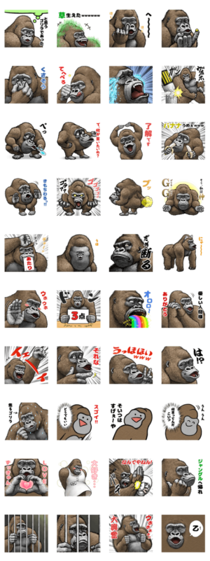 シュールなゴリラのスタンプです。1頭身のゴリラも加わり、よりキモ可愛さが増しました。大友しゅうま より発売