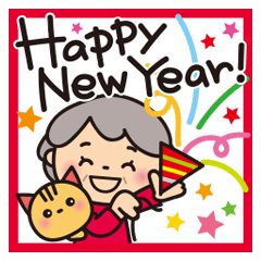 優しくてキュートな「ばぁば」のスタンプ、年末年始の[英語]バージョンです。