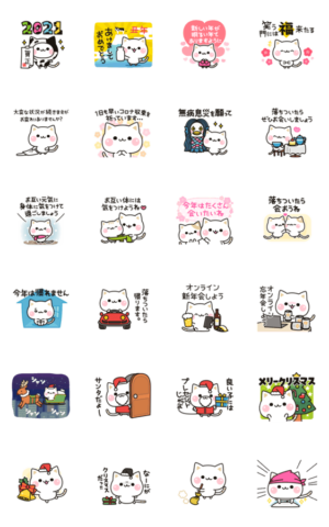 気遣いのできるねこの年賀&クリスマススタンプ♪コロナ禍でも使いやすいお祝いムード控えめ挨拶も★クリスマス・年越し・年明け・新年の挨拶・お正月を楽しんでね♪DECOR より発売