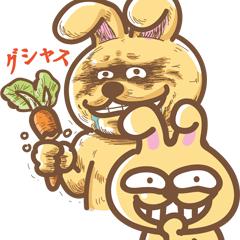 エロい目で何かを企んでいるうさぎです。たまにマジ顔になります。だども意外と憎めない、まぁまぁカワイイやつです。