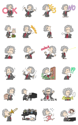ドイツ古典派音楽の頂点に君臨する大作曲家が、かわいいスタンプになって登場。ちょっと不機嫌な時に使えるレパートリーが豊富です。