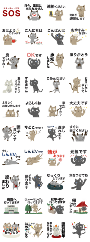 デフォルメされたねこの文字入りスタンプです。会話になじむ使いやすいスタンプです。