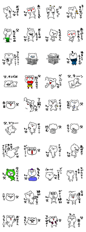 全国の「パパ」専用スタンプ。かわいい「くま」が父親の気持ちを代弁。日常会話で使いやすい。cosotto より発売