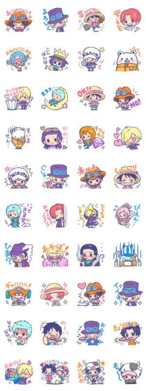 ちっちゃくてかわいいワンピースのスタンプです。 麦わらの一味はもちろん、エースやサボ、ローやシャンクスもかわいくなりました!