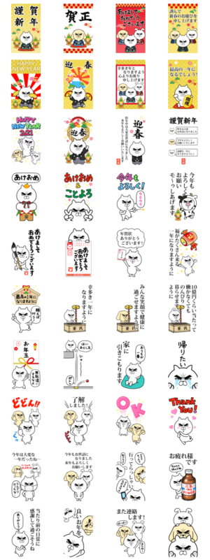 目ヂカラにゃんこの2021年のお正月・年末年始のBIGスタンプです。毎年使えるスタンプも多数入っています。