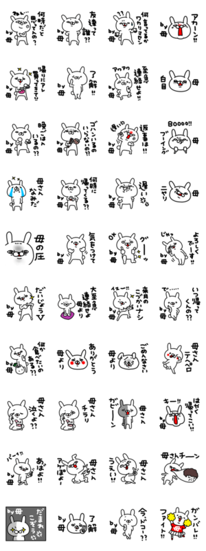 全国の「ママ」専用スタンプ。かわいい「うさぎ」が母親の気持ちを代弁。日常会話で使いやすい。
