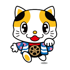 門真の民話に登場する招き猫の元祖とされる「ガラスケ」。大好物であり、門真の特産品であるれんこんがトレードマークです。肉球タッチでみんなに幸福を招きます。