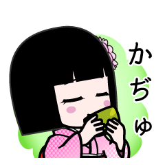 『かぢゅ』用のよく使う言葉を詰め合わせた座敷童子のスタンプです。和服 着物 浴衣かがりひな より発売