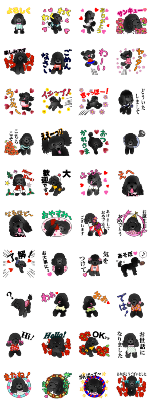 ブラックトイプーのくぅちゃんのスタンプ第2弾です! ますます可愛くなって再登場! ぜひぜひお友だちや家族へのメッセージに使ってネ!