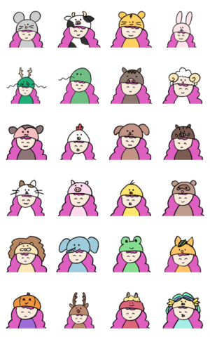 かぶりものをしたピンク髪の女の子 スタンプ画像一覧