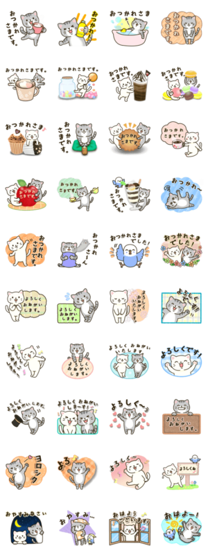 挨拶の「お疲れ様」と「宜しく」のスタンプです。よく使う「おはよう」「おやすみ」もちょっとあります。mazika より発売