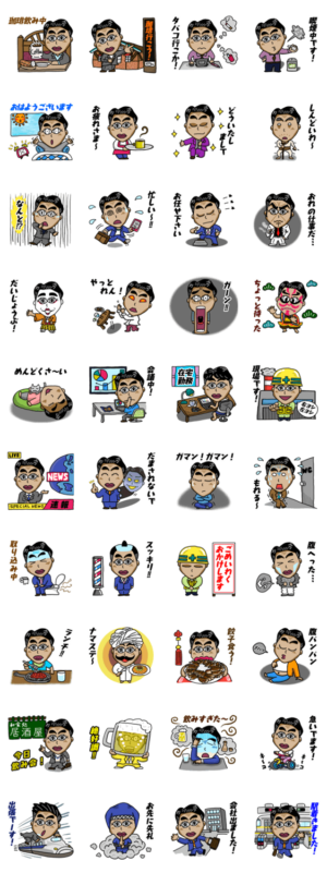 おじさんビジネスマン・サラリーマンが使うスタンプ 会社生活で使える 家庭で使える おっさんのランチやコーヒーブレイクや飲み会や出張や会議中や在宅勤務にも使える